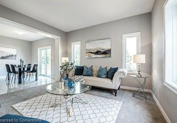 Welcome to 21 Harrington Road in Guelph! This contemporary Rockwell model by Fusion Homes features a double car garage and boasts 3 bedrooms, 3 bathrooms, and a media room on the second floor. This nearly-new home, built just a year and a half ago, is located in East Guelph. The main floor offers a generous open-concept layout, ideal for entertaining, complete with 9-foot ceilings, a stylish gourmet kitchen featuring quartz countertops, upgraded cabinets, and stainless steel appliances, plus an island with a breakfast bar. The upper floor, includes huge master bedroom that comes with a luxurious 5-piece ensuite bathroom and an oversized walk-in closet. Second floor also has other two spacious bedrooms, a media room, laundry and main bath. Additionally, the home has a lookout basement with large windows and a separate side entrance, providing potential for a legal second unit for extra income. Don't miss out on this must-see property!