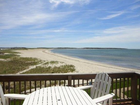 Remarkable water views from this waterfront condo on Nantucket Sound. Nicely updated with granite kitchen, cathedraled and beamed living room, breakfast bar, wood floors, bedroom has sliders to a deck; 2nd bedroom is a loft that is accessible by spiral staircase. Stack-able washer/dryer; town sewer, private beach, plus unit is being offered fully furnished and it has a strong rental history.
