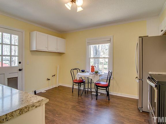 Delightful 1940's cottage in fabulous location! Beautiful hardwood floors, charming living room w/decor FP and built-in. Cheerful kitchen has nice mix of new and vintage cabinets, stainless french door frig, 5-burner range & microwave. Nicely updated bathroom. Sunny BR3 would make a great study. Huge fenced yard. Add'l upgrades inc. insulation, hardware, light fixtures, gutters. Double pane windows. Sweet little spot tucked away off Cole Mill Rd, conv. to Duke, the Eno, eateries, downtown, highways.