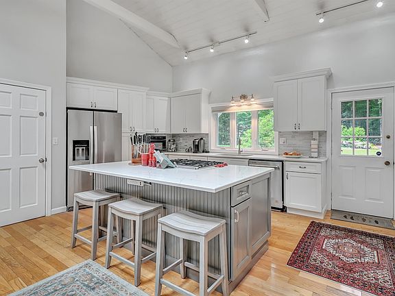 Surrounded by conservation area and steps from local trails, this Marshall Farms well maintained expansive colonial offers over 4,000 sp ft living space along with a one bedroom in-law with private entrance! Enter the newly updated open concept sun filled eat in kitchen with cathedral ceiling, center island, newer SS appliances and adjoining 4 season sunroom. Room to entertain with the first floor formal living room & family room both with fireplaces. Formal dining room, office space and laundry room. round out the 1st floor. 2nd floor features primary ensuite with updated bath featuring built ins, walk in tiled shower, soaking tub & double vanities. 3 additional spacious 2nd floor bedrooms. Lower level offers weight room and new media room, offering acoustic panels,- perfect for movie and sports watching! Lots of options with the new 1,200 sq ft private entrance in-law with open concept living room, kitchen with center island, separate bedroom, bath. Additional upgrades include: newly finished garage with room for 7 cars, new deck, mini splits in bedrooms and ADU, newer hardwood flooring and new Anderson windows throughout. Easy access to local trials and located at end of a cul-de-sac. This well appointed home offers privacy and space for all your needs! Only minutes to downtown Exeter, Phillips Exeter Academy, shopping, Exeter hospital, Amtrak beaches and highways. Delayed showings begin at Open House Thursday August 29th from 4-6pm and Saturday 10-12.