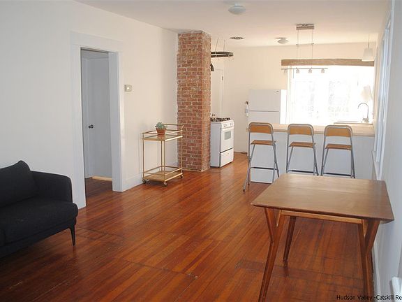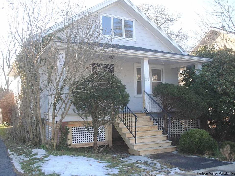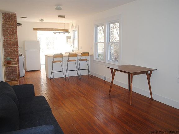 Charming & convenient describes this cute home close to uptown Kingston. Main floor has open kitchen/living room concept with french doors out to a small deck & backyard. Light filled kitchen has a breakfast bar with stools, farm sink, butcher block counters & exposed brick chimney which gives character to kitchen area. First floor also has 1 bedroom, full bath, & a walk thru room/office/bedroom which leads upstairs to another bedroom in the finished attic. This second floor also has an open concept including a large bedroom, ample closet space, washer/dryer closet & a bath with a claw foot tub. Other features include full unfinished basement, shared driveway with parking pad behind house, some replacement windows, roof 2018, HW heater 2013, furnace 2011. Location is key here with all uptown has to offer these days. Minutes to farmers market, shopping, bus terminal, Exit 19 on NYS Thruway, park/zoo/playground, many restaurants, boutique hotels, coffee shops & so much more.