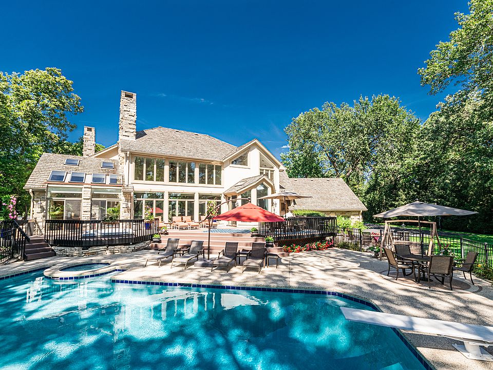 Traditional Elegance in the 24-hour guard GATED neighborhood of Wynstone. Enjoy RESORT-STYLE living in this rare opportunity to own a gorgeous 1+-acre estate with nearly 7,000 finished square feet, with floor to ceiling panoramic views of mature oaks, 9th fairway, and a huge backyard with pool, hot tub, and spa for year-round enjoyment. This spectacular 5 bedroom + OFFICE + 6.5 baths on a low traffic street; great for children, with 2 cul-de-sacs at the end. The outdoor oasis feels like a resort with a 22 x 40 pool with large pebble aggregate surround and hot tub, enormous deck with built in spa for year-round use, and outdoor fire-pit with seating for 8. Features such as 2023 exterior stucco repair and extensive landscaping have been done. A grand foyer entryway opens into a large family room with floor to ceiling windows for lots of sunlight all year long. A private office with 2-sided limestone fireplace, 6 skylights (plus attached bath with Sauna) is the envy of every video conference call. The open kitchen showcases 42" maple cabinetry with Granite counters, a huge island, a gas cooktop with double oven, separate built-in microwave, and large walk-in pantry. The kitchen opens into the family room and vaulted breakfast room surrounded with windows and skylights. The first floor gets rounded out with an ensuite in-law/guest suite. The second floor houses the large master and 2 additional ensuites. The master is full of light with vaulted ceilings windows that overlook the backyard oasis. The master bath has separate vanities, large walk-in shower, and jetted garden tub. The amazing custom master closet/dressing room has an 8+-foot granite topped center island, ideal for packing for trips, and offers an additional closet ideal for storing luggage. The renovated basement has a kitchenette, movie area, and large wine cellar and offers a large bedroom #5 with two closets and full bath. Top A RATED: Barrington 220 schools.