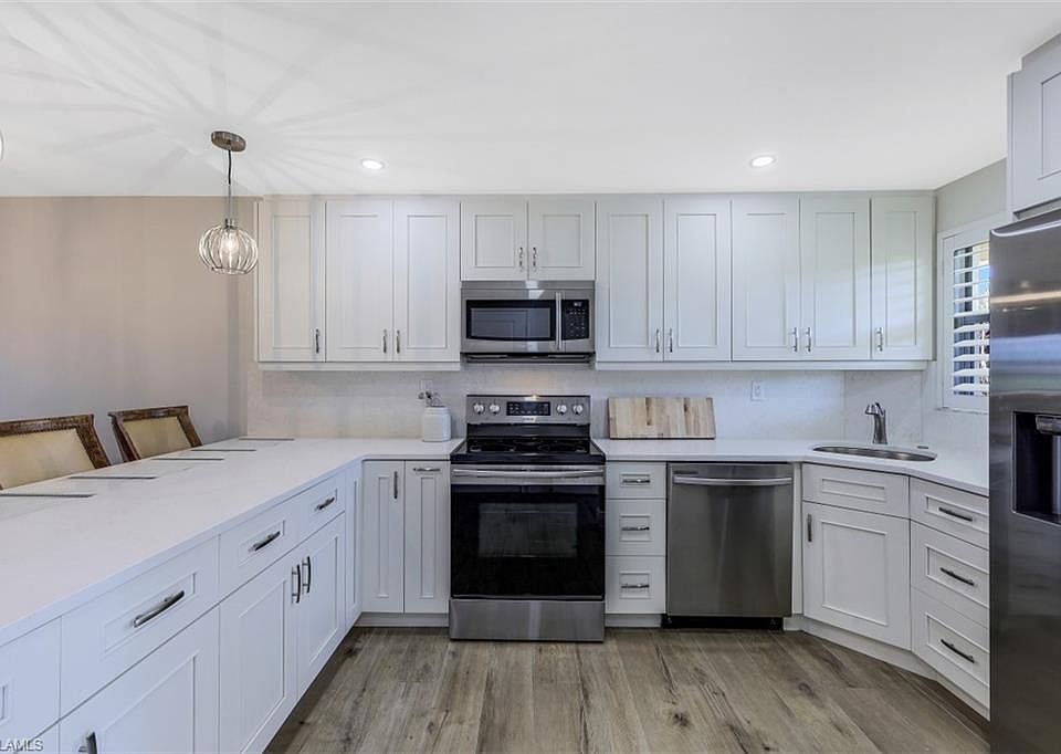 C7406 - Beautiful, fully renovated 1st floor condo offered "turnkey" furnished! Located in High Point Country Club, a magical oasis within the heart of Naples, just over a mile to the Gulf. Passionate long-time residents call it the best place in Naples! Features include elegant wood-grained tile floors throughout, a new AC, opened kitchen with quartz countertops, solid core doors, and custom closets and pantry. The lanai offers breathtaking golf course and sunset views in the western sky. Amenities include 6 pools, a 9-hole executive golf course, putting green steps outside of the lanai, tennis, pickleball, bocce, fitness room, clubroom, and onsite restaurant, serving breakfast and lunch, catered by Blueberries. The club offers a very active social calendar, where you can meet your new best friends!