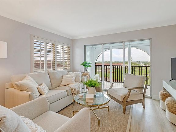 Enjoy golf daily. Beautifully renovated top floor corner condo overlooking the entire golf course. Enjoy sunsets from your screened in lanai. Nicely furnished, turnkey with everything you need to enjoy the winter in paradise. The affordable dues includes unlimited golf, tennis, pickleball, 6 pools, clubhouse with social and fitness, wi-fi and cable included. Laundry room in the condo and one covered parking space with ample guest parking.