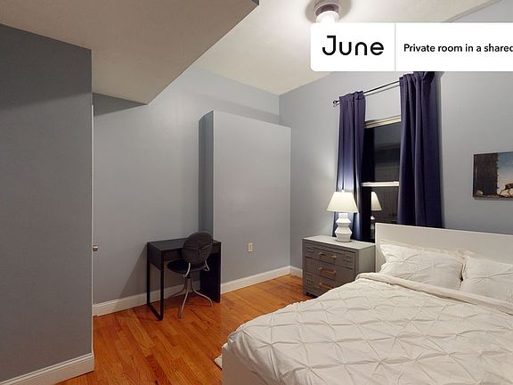 This Queen room in Allston is available on a 12 month lease or a flexible short term (31 to 364 days) lease. You pick your custom start and end date. Monthly rent rate is determined by furnishing preference, move-in date and move-out date. Speak to a June representative for recommendations on the best stay duration for the lowest rate.