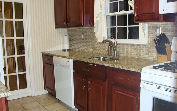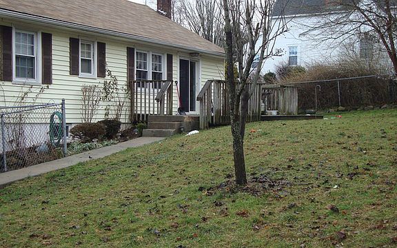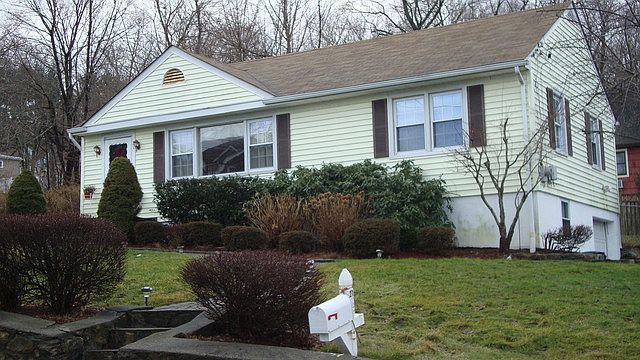 GREAT starter home in an extremely convenient location this 2 bdrm, 1 full bath ranch style home, on a corner lot offers an updated tiled kit. with granite counter tops, new appliances and sliders out to the deck over looking a fenced in pvt. yard. there are wflrs. in the Large LVRM and DNRM. the W/O finished basement offers space for a family room and home off. 2 yr. old boiler and H2O heater. Brand new washer. Above ground 275 oil tank. Unilock walkways. Walk to school, shops and bike path.
