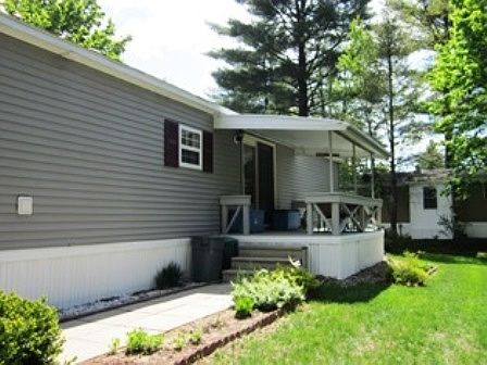 New to the market, our classic Dover II floor plan!Tastefully finished and meticulously kept, you'll find a top quality finish and HGTV styled dcor throughout. Sprawl out in over 430 sq. ft. of central living space including a huge living room, separate dining room, adjacent kitchen boasting warm caramel finished cabinetry, skylight window and complimented by a complete appliance package. The spacious master bedroom features a separate dressing area, oversized walk-in closet and the convenience of being located next to the main bath. The guest bedroom, located at the opposite end of the home, has its own walk-in closet and bath. Both baths have been completely updated with new vanities, Corian countertops, custom fixtures, tile flooring, and the main bath has its own skylight. Central a/c and ceiling fans throughout will keep you cool and comfortable this summer. Relax on the covered back deck overlooking lush grounds or barbeque on the private patio. This is an excellent home and a superb value! Originally built in 1991, this home is financeable and available to close within 30 days. Call Kerry today at 603-224-4464 to schedule your personal tour.
