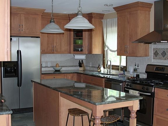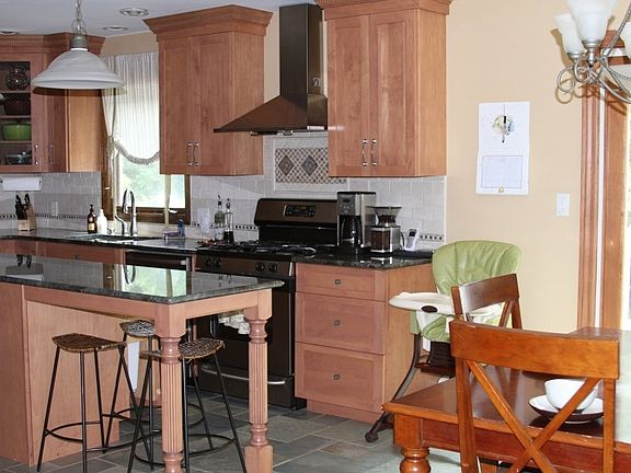 Stunningly updated home. LR w/HW floor & brick woodburning FP. The Kitchen is a chef's delight w/granite ctrs, maple cabs, breakfast bar, SS apps, beautifully tiled backsplash & flr and a Dining Areawith Sliders to the deck. Lower Level Family Room w/wall-to-wall carpet, gas FP, crown molding & sliders to patio. 1 Lower Level BR w/double closet. MBR w/HW floor, double closet & door to Deck. Spa-like MBath w/vessel sink & decoratively tiled stall shower w/riverstone floor. 2 Addl BRs w/HW floors. Fenced yard w/In-Ground Pool and Deck for outdoor relaxation and entertaining. Property back to woods for added serenity and privacy.