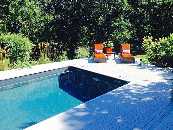 Rental Registration #: RPI70644 East of Shinnecock Canal, this sleek mid-century beach home is ideal for relaxing away the summer days!. Three bedrooms with one king & two queen size beds make it ideal for a small group -- includes new linens, freshly painted and upgraded kitchen and two baths, heated pool with large deck, hot tub and outdoor shower. Sunny full fenced and landscaped backyard with gardens, surrounded by trees, located near the ocean & bay beaches, great restaurants and beat the traffic into Southampton Village from this central location south of the highway -- 10 minutes to Cooper's Beach and the heart of the village!! Great for boaters with the proximity to the marina in Shinnecock. Enjoy a stroll to Shinnecock Bay.