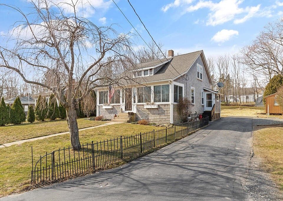 Beautiful cape home with gable roof located in much desired area of West Bridgewater on dead-end street near Anderson Farm! Enter into a large vaulted ceiling spectacular 3-season front porch with updated Harvey windows and gorgeous woodwork! First floor bedroom, updated eat-in kitchen with granite countertops and loads of cabinetry & hardwood flooring. Updated bath with wainscoting! Family room, dining room ,beautiful stairway leading primary bedroom & additional bedroom.. Hardwood floors throughout!! Full unfinished basement & partially fenced-in yard with shed. Brand new 4 bedroom septic to be installed! Roof only 10 yrs. old! Parking off street for 5 cars plus street parking. Excellent location short distance to Market Basket, West Bridgewater High School, Hockomock Plaza, Park & Ride located near Barrett' Ale House. Approximately 2 miles from Bridgewater train station. Close to major routes & highways!