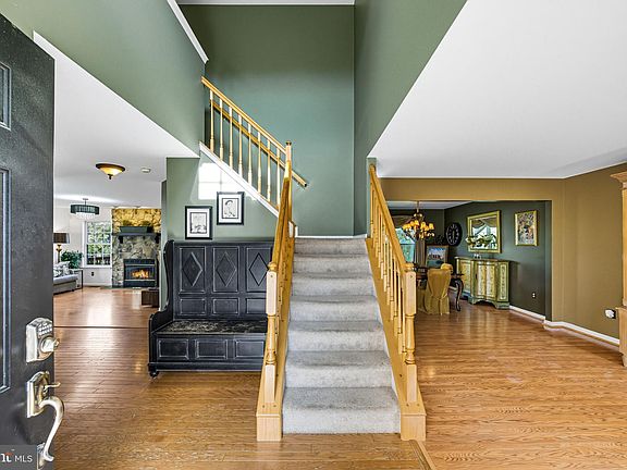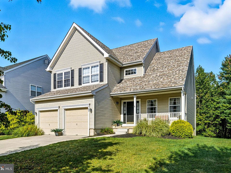Welcome to the sought-after Saybrooke Estates neighborhood in Mount Laurel! This Orleans-built Kendall model offers three bedrooms, two and a half bathrooms, a two-car garage, and a finished walk-out basement—providing the perfect blend of style, space, and convenience. The home’s curb appeal is undeniable with its charming front porch and mature landscaping. Step inside to a dramatic two-story foyer with gleaming hardwood floors. The foyer opens into a formal living room filled with natural light from two large windows, which flows seamlessly into the spacious dining room with a side-by-side double window. The dining room connects to the expansive eat-in kitchen, featuring beautiful Corian countertops, a stunning glass mosaic backsplash, and stainless steel appliances including a gas stove with double oven, built-in microwave, and French-door refrigerator with pull-out freezer. A bright breakfast area with expansive windows makes this the heart of the home, with a door leading to a large back deck. The deck overlooks a backyard that backs to woods, offering tons of privacy—perfect for morning coffee or summer barbecues. The kitchen opens to the inviting family room, highlighted by a striking wood burning, stone fireplace. Durable laminate flooring runs throughout most of the main level, which also includes a convenient half bath and laundry room. Upstairs, a spacious landing leads to a double-door entrance to the large primary bedroom with walk-in closet, secondary closet, and an en-suite bathroom boasting dual sinks, a corner soaking tub, and a separate stall shower. Two generously sized bedrooms and a full hall bathroom complete this level—all with matching laminate floors. The finished walk-out basement provides even more living space, featuring a custom oak wet bar and a separate office with French doors. Sliding glass doors and a large window fill the basement with light and open to the backyard. There’s also plenty of unfinished space—perfect for storage. Located near top-rated schools, shopping, dining, and major highways, this home truly has it all—style, space, and location. Don’t wait—schedule your showing today!
