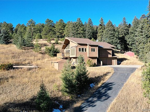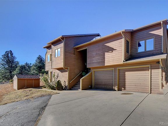 HUGE PRICE IMPROVEMENT!! Back on Market after a COVID pause. This cozy hillside mountain home is drenched in sunlight with a creek running through the front yard. Passive solar, vaulted ceilings, hickory flooring and updated master bath are just a few of the features. The south facing driveway ensures hassle free snow removal during winter months. The side yard has a large gravel area perfect for a greenhouse, teepee, tikki bar or play gym. There is a retractable roof on the observatory/shed for viewing the beautiful night sky (telescope not included). Only 3 mins to King Murphy Elementary, 7 mins to Evergreen Parkway via Stagecoach Blvd or a 10 min drive to Evergreen Lake via picturesque Upper Bear Creek Road, and 21 mins to Echo Mountain Resort; this location can't be beat! Low Clear Creek County taxes/utility bills. Please note assigned schools are Clear Creek County. Opting into Jeffco Schools is available IF there is space. All information deemed reliable, Buyer to verify. Please adhere to all COVID guidelines while viewing this property. Familiarize yourself by watching the virtual tour and viewing photos before requesting a showing. Thank you.