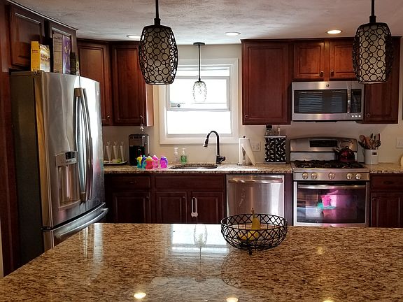 This completely renovated "move-in" ready Colonial offers many updates. Open concept with gleaming hardwood floors, recessed lighting and lots of natural light. The kitchen offers maple cabinets, granite counters, center island, stainless steel appliances and dining area which flows into the living room with oversized picture window, French doors to the vaulted family room with ceiling fan, recessed lighting and slider out to the deck which has a natural gas line for your grill. A large patio and fenced back yard for privacy and all your summer entertaining and enjoyment. Hardwood floors also in all the bedrooms upstairs, 2nd floor laundry and a bath. Then you have more living area in the L-shaped finished lower level with full bath, premium vinyl flooring, storage room and fabulous walkout basement. Close to shopping and restaurants and easy highway access for commuters!
