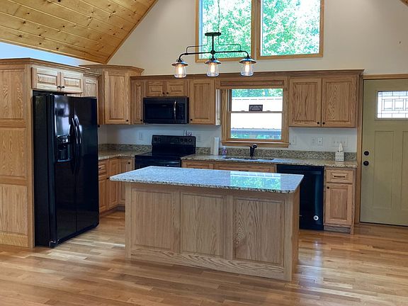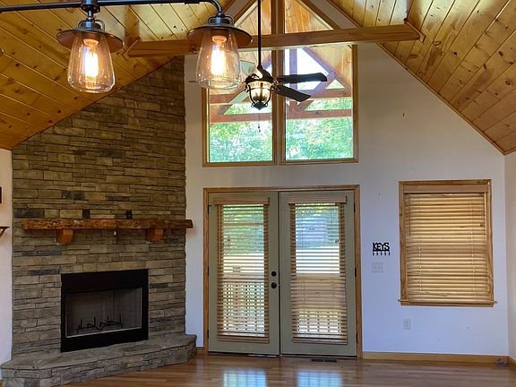This mountain cabin has so much to offer. 2 bedrooms with walk-in closets and 2 tiled bathrooms, split floorplan with the great room in the middle. Large kitchen island with breakfast bar, plenty of cabinets, granite counters, & black appliances. Cathedral wood ceilings with wood beams, woodburning corner fireplace with stacked stone to the ceiling, separate laundry with utility sink, doors in master bedroom lead to the full porch to enjoy nature. Master bathroom with tiled shower. Outside you will find a detached 2-car garage, separate shed, and a large pavilion with electric & metal roof perfect for family picnics, or to add an outdoor kitchen! Plenty of sunshine. Plenty of level land. Plenty of parking. Easy access off state maintained paved road. The mountains are calling!