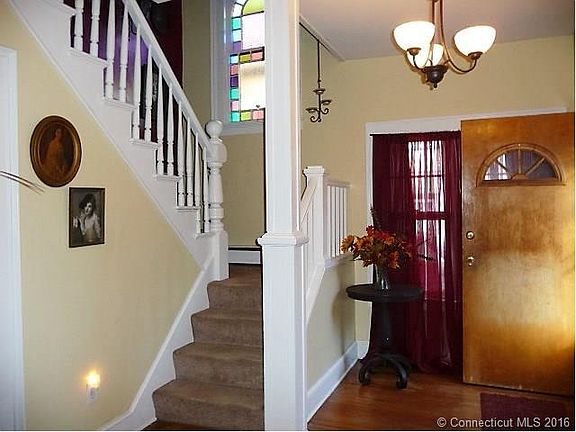Nice Colonial with nice character and charm. Gracious front foyer with wrap around stair case and gorgeous stain glass window. Formal living room with french doors leading to a large formal dining room with turret style windows. Main floor study with french doors and rear deck. Light and bright kitchen with plenty of cabinets and counter space. There is a full bath on the main level. Upstairs are three generous sized bedrooms and a half bath. Home needs a good cleaning. Has been winterized please do not try to use water. pu Bank will not allow closing cost credits