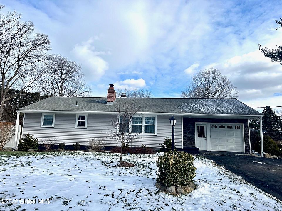 preapproval required. Great Ranch Home in North Colonie Schools, Hardwood floors, freshly painted tiled bath, newer fireplace insert with stacked stone and updated mantle, hickory kitchen with beautiful crown, central air, all new lighting modern ceiling fans. The lot is large, corner lot, newer evergreen trees for enhanced privacy, 3 season room currently being used as home gym, dead end lot, walk the Shaker JR/Sr High, close to some of the best restaurants and shopping in the area. Basement is finished with office, laundry room, full bath and family room. **Sellers request a pre approval rather than just a prequal letter**