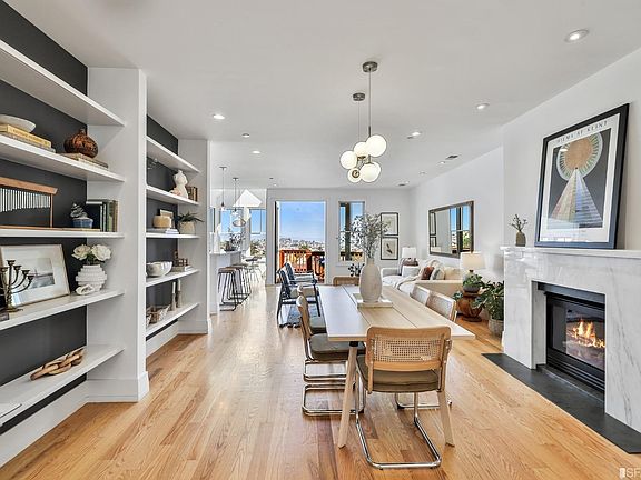 Steps to Noe's 24th street w a 92 Walk Score, this 2 lvl, 3BDR/2.5BA house-like condo - w an extra 4th bedroom/home office/den - has it all! Light filled, open flr plan punctuated by a wall of windows w breathtaking Bay to Mt. Diablo vus. Open living, dining and kitchen spaces flow together. Pro sun-drenched kitchen w 6 burner Viking range, Calacatta Oro marble countertops, a large pantry w prep sink, and a marble island w seating. Bright, window-lined breakfast nook. Spacious dining space w marble fireplace and built-in shelving - amazing for entertaining! Living area opens to a deck for BBQing and soaking in the sun and views, and leads down to the expansive, lush, level pro landscaped backyard replete w apple, apricot, lemon, Japanese maple and weeping cherry trees. 2 large BDRs on the main lvl - one could also serve as a family room or a home office. A full tiled bath, a crisp powder room, and a laundry station complete the main lvl. Upstairs, 2 more BDRs. Expansive primary BDR w 2 large closets opens to a b'ful deck w sweeping east bay and city views + luxe tiled BA. Indp garage parking. 2 unit bldg w extensive 2006 renov. Steps to 24th St shops + cafes, tech shuttles, MUNI, the J, Douglass playground, Philz, Whole Foods, and more. This house-like condo is the whole package!