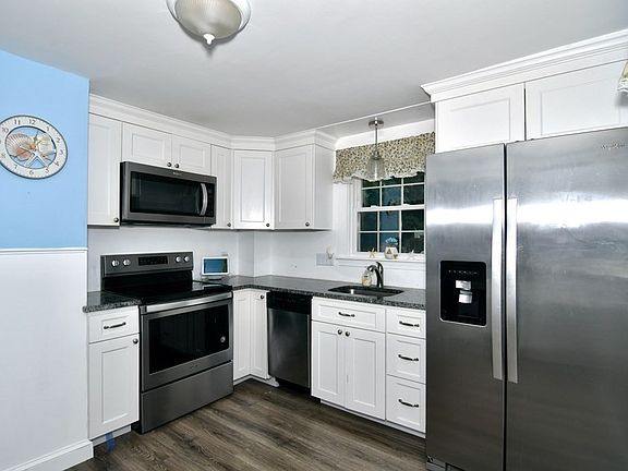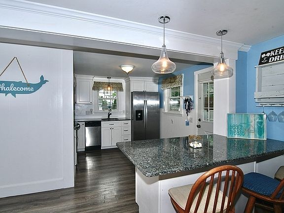 By Whitman line. Beautifully maintained and cared for Cape with family room in basement. Updated kitchen and a built in granite breakfast bar with pendant lights. Open floor plan with wainscoting in kitchen and dining room. Newer central air/heating system, oil tank, tilt-in vinyl windows. Large fenced backyard has a shed with electricity. Subject to seller finding suitable housing.