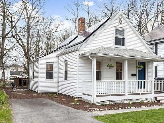 Nestled in the heart of downtown Canton is this 3 bed 1 bath gem abutting the Massapoag Brook. Steps to downtown and all shopping, restaurants, and the commuter rail. You are welcomed by the inviting farmer's porch and fresh landscaping. The open kitchen layout has stainless steel appliances and gas stove. Beautiful bamboo floors and new engineered hardwood on the second level. Third bedroom currently acts as an office space and exercise room. Additional updates include recently remodeled bath, newer driveway, new insulation via Mass Save, and a newer hot water heater. Stepping into the backyard you will find a generous deck, patio, and yard space including a fire pit. Solar panels provide excellent energy cost reduction. Bright, airy and comfortable, this well maintained property will surely make you feel right at home. Great condo alternative! No showings prior to OH Sat 4/23 11-1pm.