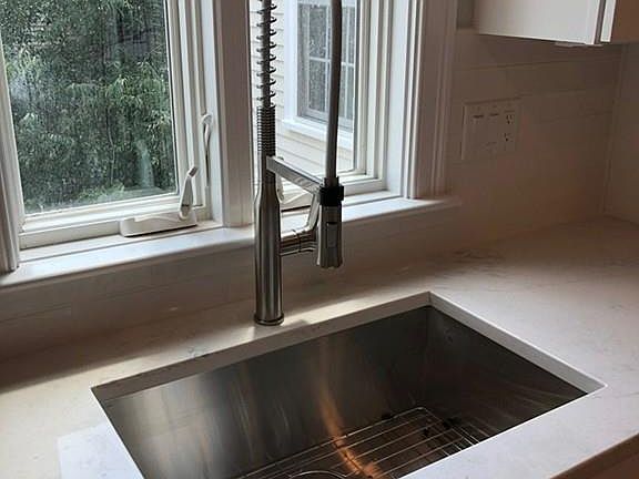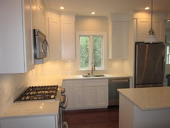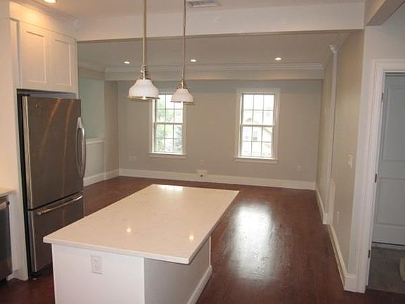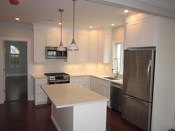 BRAND NEW modern renovation with open floor plan. Everything is brand new! Gorgeous dark hardwood floors look amazing with light gray walls and all white kitchen. Modern light fixtures. Gorgeous and large bathroom. Very high ceilings. Two good size bedrooms. Walk into a mudroom area and storage closets on the first level and everything else is located on the second level. Central air! Brand NEW gas heating system and windows. Off street parking for three cars. Patio just for unit. Storage room just for unit. Please no pets and no smoking. Brand new fireplace. Available 9/1