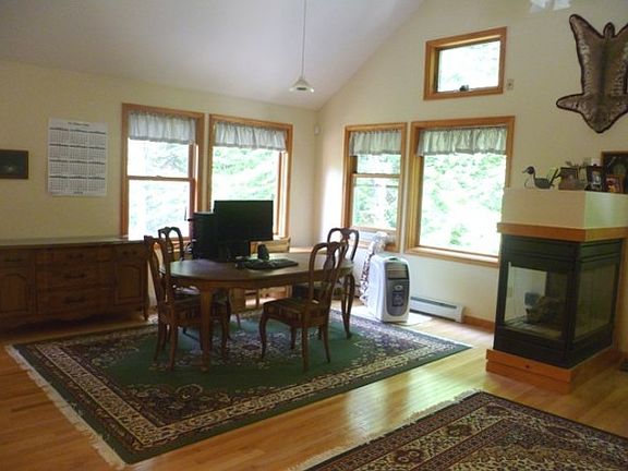 This like-new, quality home sits on 4 private acres that includes 50ft of lake front on Hermit Lake, 785 ft of road frontage & over 1000ft of frontage on a running brook which borders the east side boundary. Large open concept living/dining area w/ cathedral ceilings & wood flooring with gas fireplace. Huge walkout basement w/ extra high ceilings for a family room and/or additional bedroom if needed. Large shed on concrete slab to house your own golf cart (included) to drive along the cleared trails on your property. Beautiful stone patio, steps and retaining walls. Even includes a wired generator. Southern exposure and cleared lawn areas for gardening if desired.