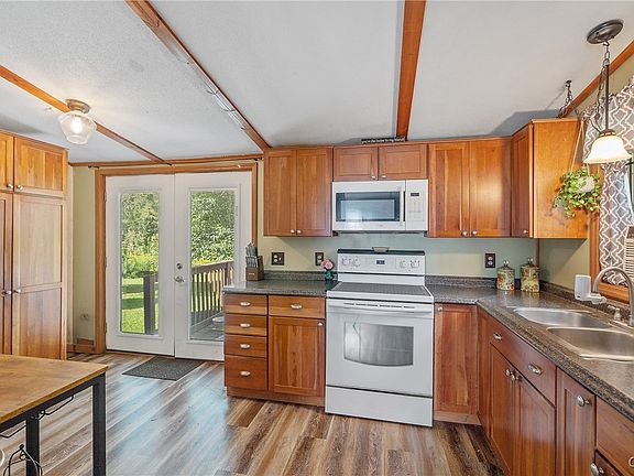 Discover your dream hobby farm on 3.96 picturesque acres at the end of a quiet dead-end road! This property offers the perfect blend of country charm and convenience, featuring a 2-bedroom, 1-bath doublewide home, a spacious 2-car garage, a 3-stall barn-with water, run-in shed, and a separate outbuilding for hay storage. With no homes behind, you’ll enjoy privacy and beautiful views of neighboring horse-friendly farm fields.