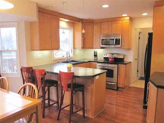 Fabulous Cul de Sac Location! Back yard is your very own resort with inground pool and covered portion overlooking! 4 Bedrooms-All good size! New Cherry laminate flooring! Woodburning fireplace in large family room open to gorgeous kitchen with maple cabinets and stainless appliances! Chair molding and picture framing in formal dining room!