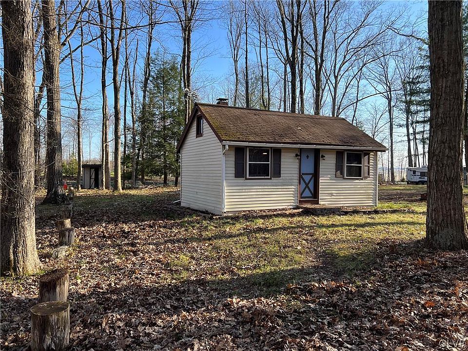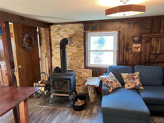 Looking for a place to get away cabin or a tiny house, check out of 21 Hunting Lane. A great location, near so many activities. For the hunter, State Game Lands across the street. Love to ski, minutes from Jack Frost & Big Boulder. Boating on Lake Harmony, biking & hiking trails, less then 20 mins from the Pocono Raceway, near Jim Thorpe, & much more. This cozy one room cabin, on a .64 acre wooded lot, features a queen bed & 2 bunk beds. The kitchen features a propane range/oven, refrigerator, & microwave. Curl up on the couch with a good book & warm yourself by the wood stove. The property features lots of mature trees, well water, NEW (2022) August septic, lots of room for the kids to play or build onto the cabin. The septic is sized for up to 3 bedrooms, is not currently connected. Featuring the rustic charm of outdoor bathroom and outside well to top off that wilderness experience. Property lines have not be updated in public records. 3 parcels combined into 1 parcel - Aug 2023. See map in documents, is .64 acres or 27891 sq feet. Good place for a vacation home or a permanent residence. No HOA fees or ground rent. Being Sold As Is. Come enjoy the Great outdoors, relax, and enjoy the activities near by.