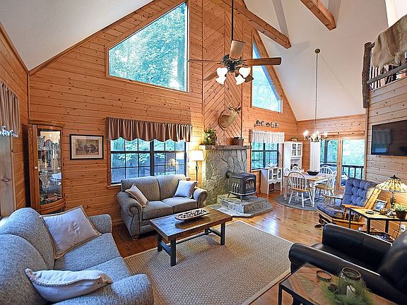 Over the river and through the woods!!!! This charming 2 bedroom/2.5 bath is absolutely perfect. A one owner home and it has been maintained and taken care of. The bathrooms and kitchen have been updated. The perfect amount of tongue and groove with sheetrock. The character of this home is around each corner with the custom handrails, wood burning stove, dry stack stone flowerbeds, brick pavers on the lower porch and a tree house!!!! The 1.97 acre lot is a nice private setting and you have a fire pit area and a large back porch to enjoy all of your land. A 24X24 garage with and additional 12X24 shop and a lean-to for additional "toy" storage. The partial finished basement has a living room, small kitchen and a half bath. Master bath has a beautiful custom shower. The location of this house is just minutes away from Coopers Creek Wildlife Management Area which is amazing trout fishing. The owner's love for this home shows and it is a must see.