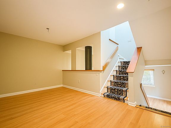 This move-in ready 2-bedroom, 1.5-bath townhouse is tucked away on a quiet cul-de-sac just minutes from downtown Bethel, shopping, and dining. The home features a bright, contemporary layout with multiple levels of living space and an additional area perfect for a home office or study. The spacious living room includes fireplace and sliding doors that open to a private patio, offering peaceful and tranquil surroundings. Upstairs, the primary bedroom impresses with vaulted ceilings and abundant natural light, while the second bedroom and conveniently located laundry complete the upper level. The unit also includes an attached garage for easy parking and extra storage. Residents enjoy access to excellent community amenities including a pool, guest parking, and playground. Experience comfortable, carefree living in one of Bethel's most desirable locations.