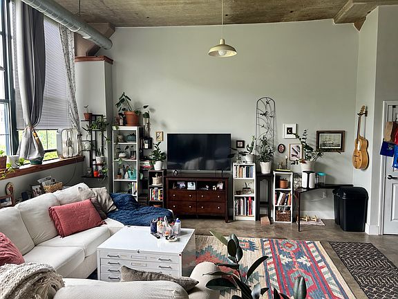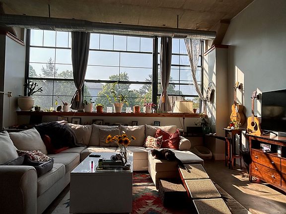 Large, modern loft with 12' ceiling and 8' tall windows. Kitchen with granite counters and stainless steel appliances, gas cooking, dish washer, disposal, microwave, refrigerator with ice maker. In unit high efficiency laundry. Blinds. Beautiful woodwork. Spacious bathroom. Extra cabinets in bathroom. Easy to care acid-washed concrete floor and exposed duct work. Off-street assigned parking for one car. Heated garage parking and/or outdoor parking for 2nd car may be available (extra fee required). Available for immediate occupancy. Please apply at our website and e-mail or text for more information. * Pictures shows the unit, as furnished by some of previous tenants. The unit is delivered unfurnished. Designed for upscale, modern, convenient living with caring trustees and responsible management. Secured access. Video surveillance. Well-cared for landscaping. Off-street parking. Convenient location - close to Clark, WPI, Medical Centers, DCU Center and commuter train. Beautiful views of the University Park, Holy Cross and Worcester Hills. Condo allows 2 cats and does not allow dogs, reptiles or exotic animals as pets. All pets require trustee approval.