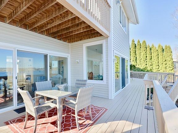 Welcome home to your gorgeous waterfront escape nestled up for expansive views across Webster Lake w/beautiful swimmable water frontage! Enter in through your 2 story foyer, where the lake views will blow you away! From nearly every room in the home, the beauty of the lake can be seen & enjoyed! The tremendous amount of natural light & glass are breathtaking from your open living/dining room, leading out to your enormous deck! Tile flooring throughout the 1st floor, 1st floor laundry, & den too! The 2nd floor boasts a master suite like no other! Step out of bed w/incredible water views to your private deck overlooking the water, what a place to enjoy your morning coffee!! Master bath has oversized door, whirlpool tub, shower, his & hers vanities, & a walk-in closet, not to mention scenic views! The 2nd and 3rd beds are nicely sized, w/a walk-in attic! Completely finished LL w/wet bar, pellet stove, full bath, & walkout to your covered patio, stairs leading to the water!