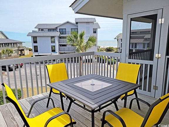 Charming condo within gated peninsula community boasts second-row proximity to the ocean with peek-a-boo view from the porch. One of two community pools is also within view. Second-floor (top), single-level furnished condo offers comfort, convenience and casual coastal lifestyle. Fully equipped kitchen, screened porch, sun deck and designated carport. Stairs only, no elevator. Excellent rental potential. Inlet Point is uniquely located on a secluded peninsula bounded by the Atlantic and a tidal salt marsh creek. Amenities include cable, internet, 24-hour guard gate, private access to the 7-mile-long beach, two swimming pools (1 Olympic), hot tub, playground and creek dock. Convenient to nationally acclaimed golf courses, fitness centers, shopping and restaurants, including a few within walking and golf cart distance. Historic Charleston is an easy day trip. Myrtle Beach is 25 miles north.