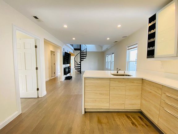 LUXURY, one of a kind! Massive townhouse with 6 large bedrooms and 2.5 bathrooms over two floors of living! Private deck out of master suite with an amazing view! 21 Iroquois St is a 6 bed 2.5 bath apartment, recent gut renovation! Very large living room-kitchen area, great for having guests and hosting gatherings. The apartment has recessed lighting, central air, private deck space, and hardwood floors throughout, and even comes with a mounted TV! The kitchen is finished with stainless steel appliances and quartz countertops. Take a look, this apartment is always a one-show! Tenants pay all the utilities.