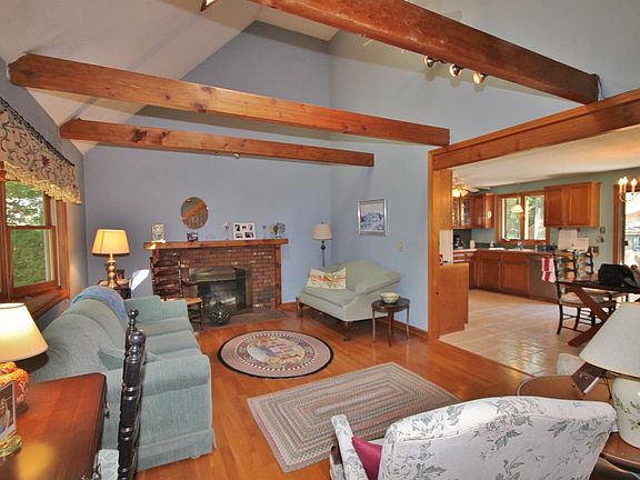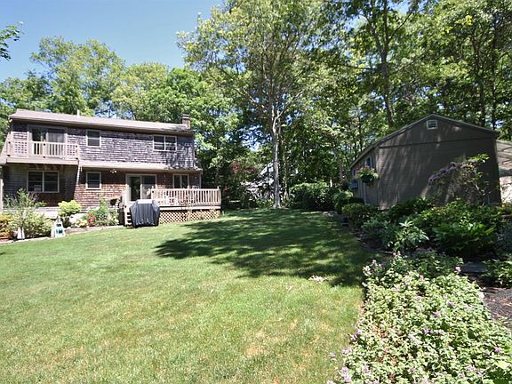 Falmouth/Hatchville: This home and property is a gardeners delight with mature plants and flowers for most seasons along with a gorgeous garden shed and more. This beautiful home has a country feel with a contemporary flair. Featuring a large fireplaced living room with a cathedral ceiling, sky lights, ceiling fan and open loft and hardwood floors. Large fully equipped eat-in kitchen/dining area with quality oak cabinetry, tile flooring, sliders to deck. 2 bedrooms (one presently used as den) and a full bath complete the fist floor. The second floor has an open balcony overlooking the living room, two large bedrooms including master with hardwood floors, sliders to an adorable Juliet balcony overlooking the beautiful lush gardens and yard. Full basement with walkout. Very private lot offering a quiet lifestyle. This home is in good shape with many upgrades and ready for a new owner. Mini splits in all rooms. Solar panels. All seasons sun room addition. Don't wait!
