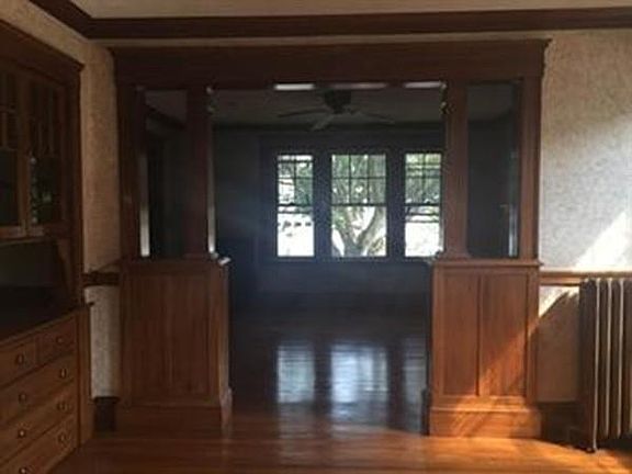 Sunny, first floor unit available in well-maintained two-family house with brick facade. Large living space is enhanced by gleaming hardwood floors throughout the unit and wonderful woodwork on windows, built-in china cabinet and entryways. Kitchen is bright with large windows, cabinet space and breakfast nook. Added features include fireplace, porch, shared side yard and parking for one car. Very close to transportation and commuter rail.