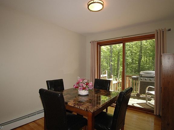 Spacious Split with Open Floor Plan. Borders 240 Acres of Park Land, Veteran's Path. Bonus 4-Season Sunroom and Rec Room for Extra Living Space. Hardwood Floors. Wood-burning Fireplace in Family Room.Deck. 2-Car Garage.Easy Commuter Access to Routes 80, 206, and 46. One-Year AHS Home Warranty Plan included.