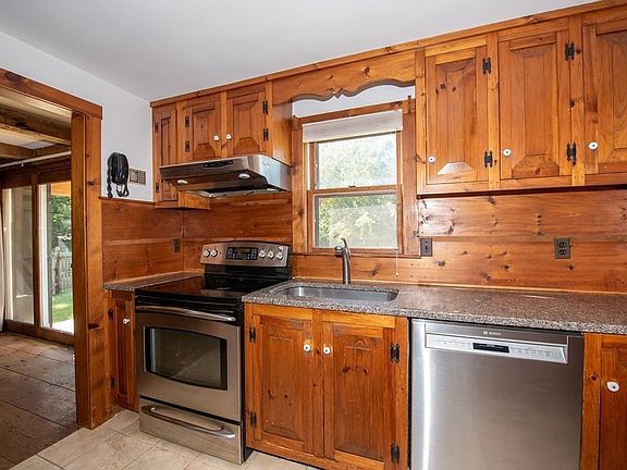 - Din Dscrp: Flooring - Wood, Fireplace, Deck - Exterior, Wainscoting, Exterior Access, Slider, Recessed Lighting, Ceiling - Beamed, Lighting - Sconce