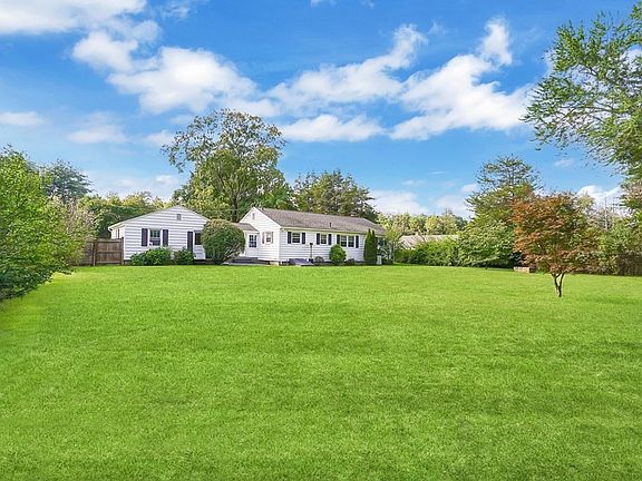 Tucked away on a dead end street, this wonderful ranch-style home radiates timeless charm and has been thoughtfully refreshed, striking the perfect balance between comfort and elegance. As you enter, you're greeted by a crisp and clean heated 3 season porch, an inviting eat-in kitchen equipped with ss appliances, ample countertop space, and a peninsula opening to the spacious dining and living area, which is bathed in natural light, exuding a cozy and character-filled ambiance. A charming fireplace, framed by a mantle, enhances the room's allure, creating an ideal retreat for relaxation. The private primary bdrm is generously sized, refreshed half bth and a full bth, while two additional well-proportioned bdrms feature hdwd flrs, ensuring comfortable accommodations. The lower level unveils a delightful game rm w/ a sweet bar area, tv & surround sound and a versatile fourth bdrm or home office. Outdoor entertainment begins here in the fully fenced in backyard. WELCOME to 21 JEWELL LN!