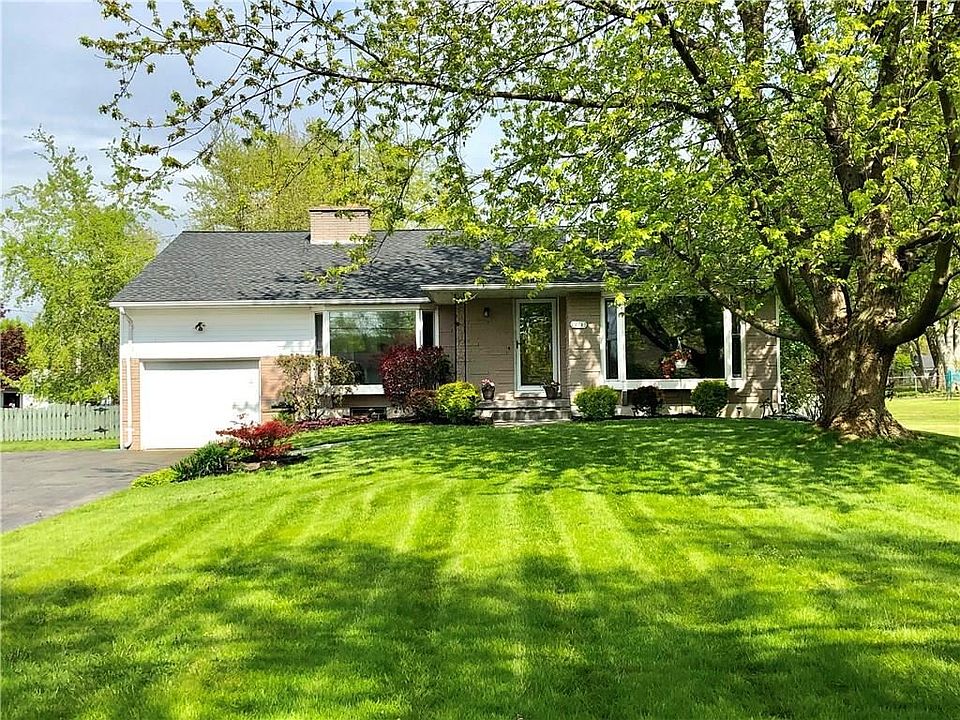 Tri-level home with an amazing amount of living space! Living, family, and rec rooms (would make an awesome in-law suite). Gorgeous cherry kitchen with gas cook top, double oven, dishwasher and side/side refrigerator and ceramic tile floor! Spacious dinette area with bay window! Freshly painted Living room has brand new ww carpet, wood burning fireplace and vaulted ceilings! Large family room with sliding glass door to fenced back yard, concrete patio and above ground pool. Roof, boiler, pool and deck all new in 2015! Great condition inside and out!