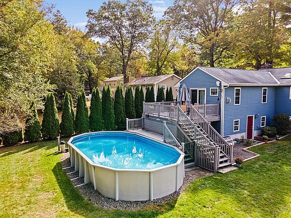 Welcome to this beautifully appointed 3bd, 2.5ba home nestled in sought after Juniper Brook Road private neighborhood with walking distance to Juniper Hill Golf Course, Chauncey Lake, walking trails & downtown. Home features expansive living space with a vaulted ceiling and skylight in kitchen/dining. Thomasville natural cherry kitchen cabinets, peninsula island, granite countertops, S.S. appliances, backsplash tile, beverage refrigerator and built in dine rm buffet. Spacious family rm w/ cathedral ceiling, gas frpl., natural sunlight, a slider to an entertaining composite two-level deck. Lower deck to above ground pool, views of a beautifully manicured yard with a gorgeous stone firepit. LL rooms used as - office, bdrm, exercise or multimedia rm, half ba, laundry rm, closet. Yard boasts an Ester Williams aluminum 15' X 30' above ground pool, grapevines w/concord grapes. Quick access to Rte.9, 20, 495 & Mass Pike. Top rated schools, easy access to local amenities. 2 -Car Garage!