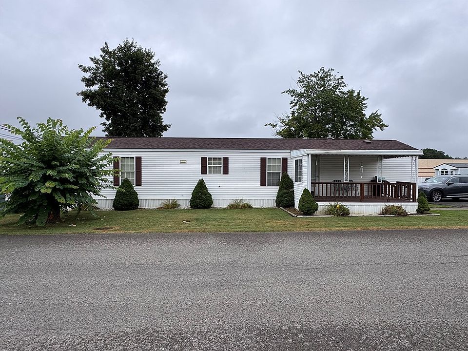Welcome to this well-kept mobile home located in the 55+ community at K and L Mobile Home Park - conveniently located near shopping and restaurants, just off of Route 422 in Butler. The covered front porch is large enough to sit and enjoy and the front door leads into the spacious living room with neutral decor and vaulted ceilings that are throughout the home. The eat-in kitchen offers abundant cabinetry with space for a table as well - all appliances are included. This two-bedroom home offers a great layout with a bedroom and full bathroom at both ends of the space. A separate laundry room comes with the washer and dryer and leads to the screened back porch. A convenient shed is outside for additional storage. New roof installed in 2021. Great opportunity to join this sweet community!