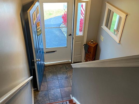 Lots of extras that make this raised ranch unique! For starters, two full and a half baths! The kitchen has an "L" shaped island, with power, that provides convenient seating, additional storage and counter work space. The living room is bright and open to the kitchen and dining area. Sliding doors lead you from the dining room to the Trex floored deck. From there you step on to a gorgeous stamped concrete path and patio that includes a cozy fire pit perfect for fall family and friend gatherings. The yard is fenced, complete with an intricate swing set and safety ground covering for kids! The primary bedroom is private with a large walk in closet with a tranquil bathroom. Additional bonus room, for office space or clean storage. *work bench in the garage does not stay but the shed does.