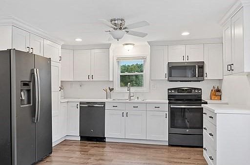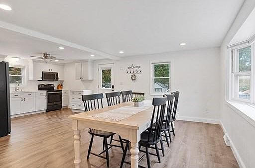 Welcome home to this beautifully renovated 3-4 bedroom Cape located in a wonderful Tewksbury neighborhood. Step into this light and bright home and enjoy your open concept floor plan. The first floor features a newly updated kitchen with stainless steel appliances, dining area, freshly renovated full bath, living room and first floor bedroom all with new flooring throughout! The second level offers two front to back bedrooms, the master bedroom offers two spacious walk-in closets and recessed lighting and to complete this level is a newer full bath. Lower level has lots of potential for future living space. Walk outside to another great feature of this home and enjoy the spacious level fenced backyard that is perfect for your outdoor entertaining! Convenient to shopping, highways and all the town has to offer.