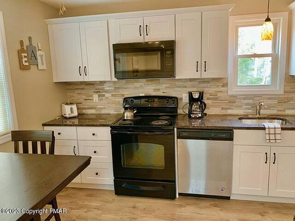 Wow!! This Updated Homes Comes Fully Furnished for New Home Buyer, Vacation Home or Short Term Rental. Home has White Shaker Cabinets, Granite Counters, Stone Back Splash, Open to living room with Slylight, Luxury Vinyl Throughout Home excluding Bedrooms. All New Heaters, Switches and Doors in 2020 Barn Door installed Seperating Livingroom from Sunroom/Game Room with Heat. Laundry Room, with Water Treatment System and Door to small Deck with patio Furniture and Weber Grill. Large Back Yard with Fire pit. 10 x 10 Shed at end of Driveway. Home is currently be used as Short Term Rental property. Development has, Pool, Tennnis courts, Basketball Court, Baseball Diamond,Playground and Clubhouse. Near Everything, Ski Resorts, Lake Harmony, State Park, Raceway, Outlet Shopping and Casinos.