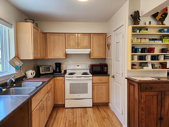Extremely well maintained home set in a cul-de-sac. This home was custom built for someone who wanted to live in their own home independently, safely and comfortably as they grew older. This well laid out home has a first floor bedroom and a full bath and the second floor has two bedrooms and a full bath. Fine details include birch flooring throughout and Maple cabinets in the kitchen. There is vinyl flooring in the bathrooms for easy cleaning. The electric stove can be swapped out for a propane if preferred (the connections are in place). The kitchen is ready with a space and hookups for the addition of a dishwasher if so desired. The three season porch in the back facing the woods adds a peaceful setting to relax in the evenings or anytime you want to spend some time enjoying the outdoors.