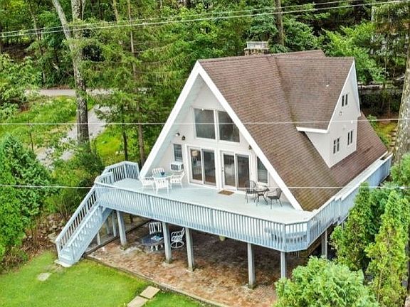 Luxury lakefront living Renovated 2017 new kitchen & 3 full baths! 3 living levels. Spacious deck & dock. Open floor plan, 2 fireplaces. 2,1st floor bedrms! 2 master bdrms. Lower level private suite. Stylish Chalet design, scenic waterfront on level lot. Enjoy expansive deck & lower level patio. Windows galore! Cathedral ceiling, hardwood & tile floors. Open design from lv/din rm w/fireplace to modern well appointed kitchen w/stainless appliances, shaker style cabinetry, granite counter & pantry. Two main floor bedrms w/double closets, hardwood floors & a sleek new main full bath. 2nd level private master w/water views & new bath. Lower level walk-out is lake front w/fam rm, fireplace, 4th bedroom & new full bath. Commuter location, 1 hr to NYC! Enjoy all 4 seasons on NJ's largest gem, Lake Hopatcong!