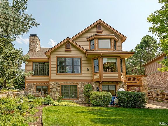 Fantastic two-story home in The Hamlet-Gated community! Low maintenance neighborhood!! One of the largest lots with backyard and large gardening area! Pristine. Approximately 3000 finished square feet. Main Level bedroom with adjacent 3/4 bath. Upper level master with $60k Master bathroom remodel. Walk in shower-tile floors -Gorgeous. Large master suite with His and hers-Cedar Lined walk in closets and coffered ceiling! Finished walkout basement with additional bedroom/bathroom, office and large rec room or media room. Large open kitchen with eat in space -Newer granite countertops and wood flooring. Efficient Gas hot water baseboard heat! Attic fan does the cooling. Newly rebuilt private deck. New electrical throughout the home. 5 year roof cert in hand. Radon being tested 9/1 and will mitigate if needed. Large finished 2 car garage with attic (pull down stairs ) for storage, service door, and utility sink. All stained glass in home stays. 3 fireplaces throughout the home 1 wood burning 2 gas. Newly replaced driveway. This home is pristine and ready for you. Great Castle Pines location. Close to I-25 access, shops at Castle Rock, Park Meadows area, DTC and new light rail station at Ridgegate. 1 year Home warranty through AHS provided!