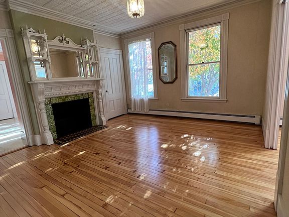 2 bedroom, 1 bath apartment on the first floor in downtown Biddeford. Walking distance to shops and restaurants. Includes a 1 car garage and a roof top deck. There is a large driveway for an additional car to park outside. Built in 1860 with lots of architectural details in tact. 12 month lease includes snow removal, water, septic and landscaping. Heat and electric are not included.