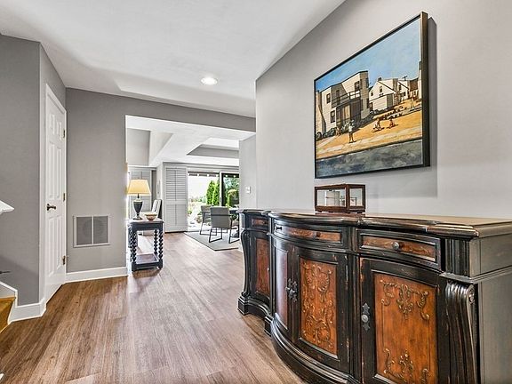 Fabulous 3 story END UNIT townhouse with amazing water views. Private garden lined entrance brings you to a welcoming foyer. Once inside you will be wowed by the open floor plan, new 2021 kitchen with stainless appliances, quartz counter tops & elegant cabinets. Cathedral ceiling living room with gas fireplace & doors out to expansive deck & oversized patio. Dining room with recessed lighting & sliders out to deck with amazing views. Spacious 1st floor study. Lovely 2nd floor main bedroom with sliders out to covered balcony, walk in closet, ensuite bath with radiant heated floors, heated towel rack & walk in shower. Large guest bedroom & additional full bath. 3rd floor has lots of flexibility to be a bedroom, office, exercise room or family room. Updates include new kitchen 2021, skylights with remote controlled shades in living room, new ceiling lights in kitchen, living room, dining room & first floor office, new gas hot water heater, new circuit breakers 2021 and more.